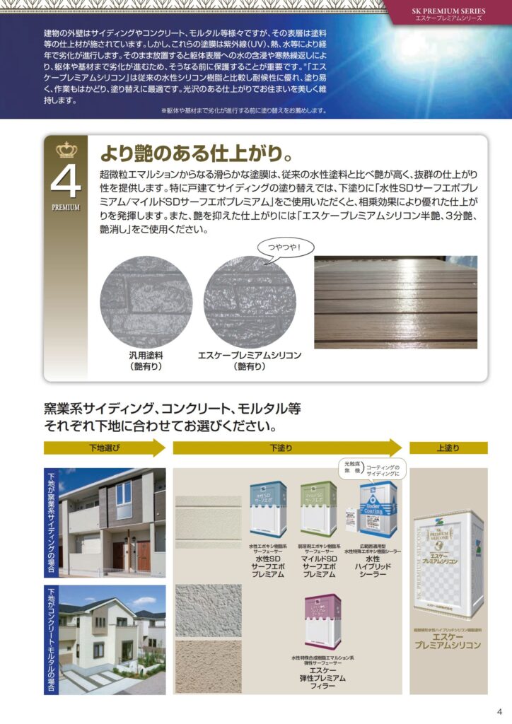 特殊シリコン樹脂塗料の滑らか且つ肉持ち感のある塗膜は、光沢のある仕上がり性を示します。艶を抑えた仕上がりをご希望の場合は、エスケープレミアムシリコン半艶、3分艶、艶消しをご使用ください。 - 柔軟性