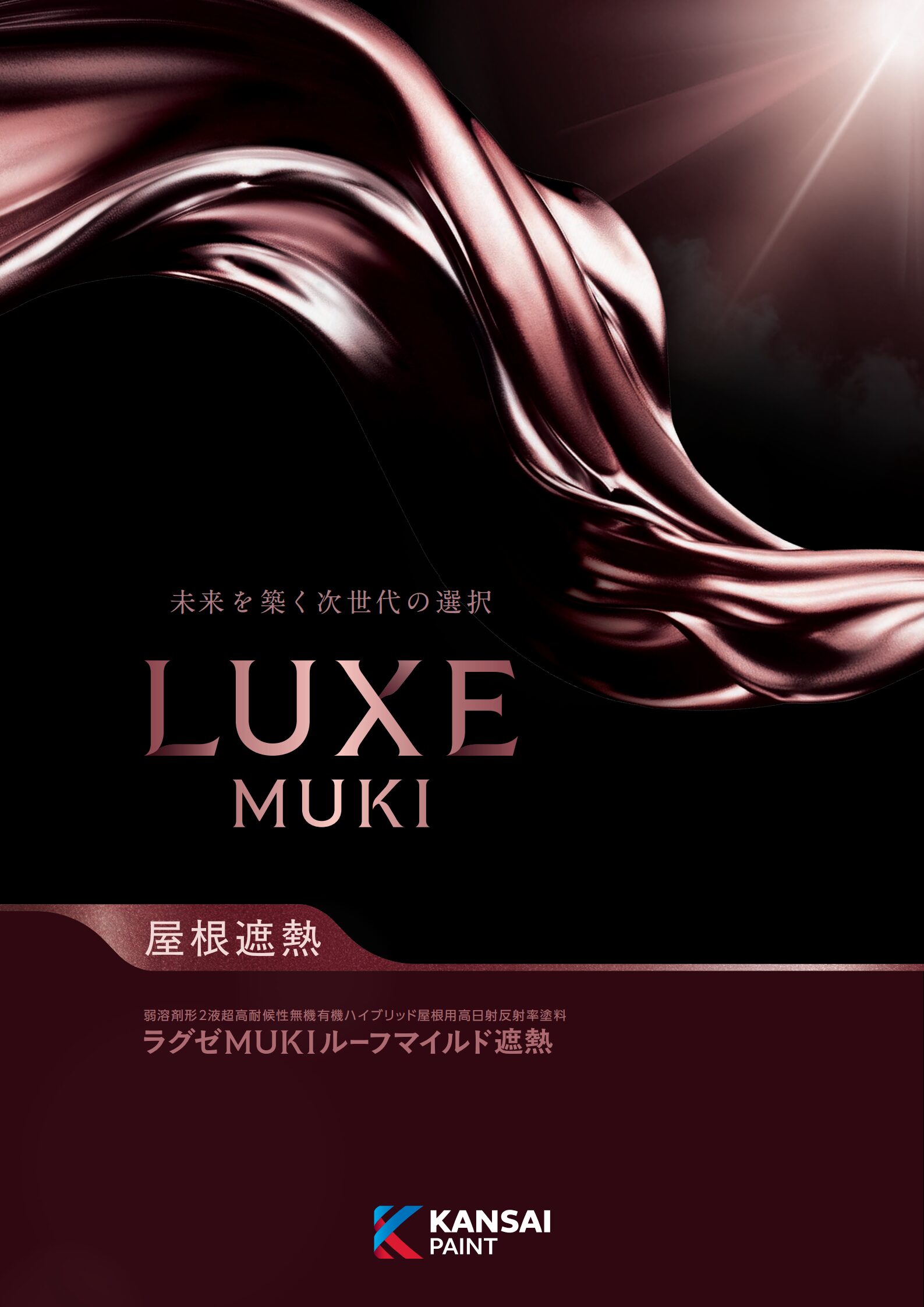 fujitoso-man 弱溶剤形2液超高耐候性無機有機ハイブリッド塗料ラグゼMUKIトップマイルド 関西ペイント株式会社 特徴・機能 以下の技術により卓越した耐候性を発揮します。 ①無機・有機樹脂の複合化技術 ②UVトラップ HALSラジカルキャッチャー、ラジカルバリヤコートによるラジカル(塗膜劣化因子)の抑制技術超低汚染性です。 防カビ性、防藻性を有しています。