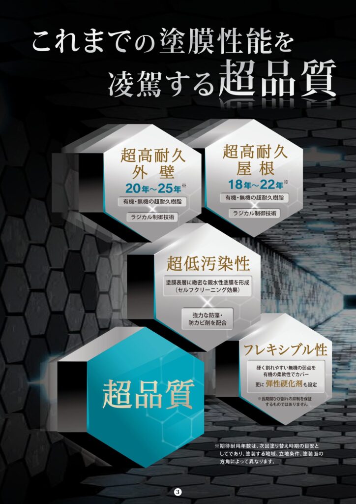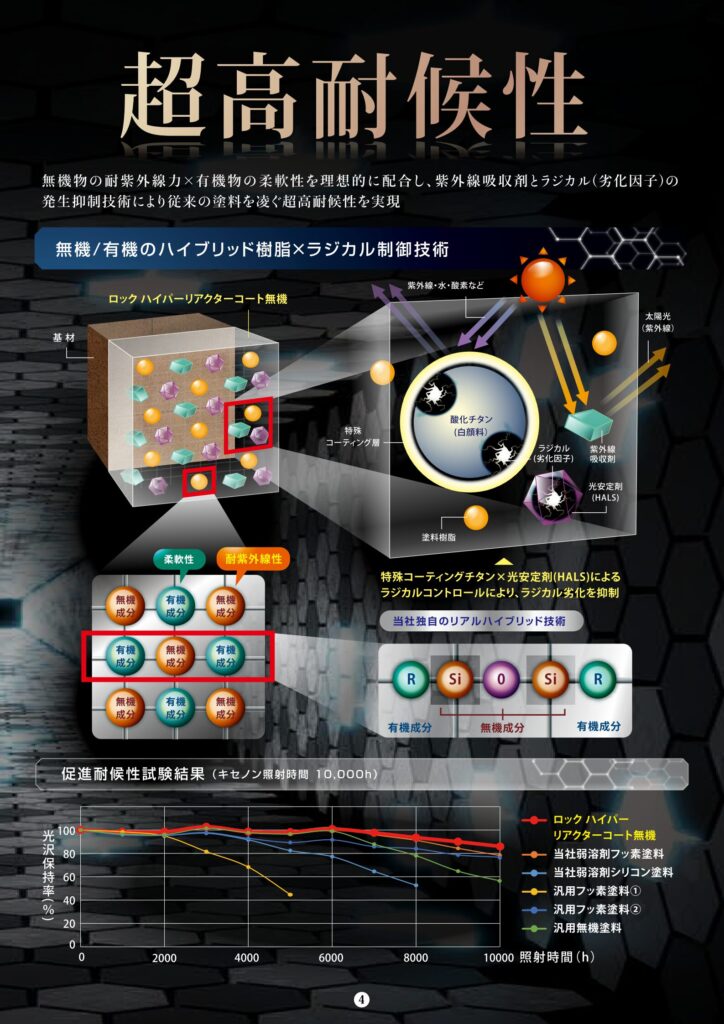 - ラジカルコントロール技術により、耐候性が非常にすぐれています。