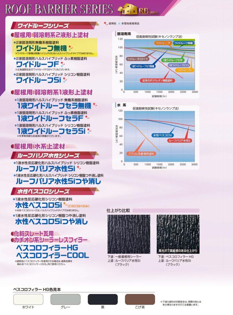 fujitoso-man 屋根用 弱溶剤2液形無機塗料ワイドルーフ無機 スズカファイン株式会社 特徴・機能 屋根用 弱溶剤2液形無機系つやあり塗料です。 屋根用 弱溶剤2液形無機系つやあり塗料です。 驚くほど肉持ちが良く高光沢の塗膜です。 優れた密着性を有する2液タイプです。 さびが発生していないトタンには直接塗装が可能です。