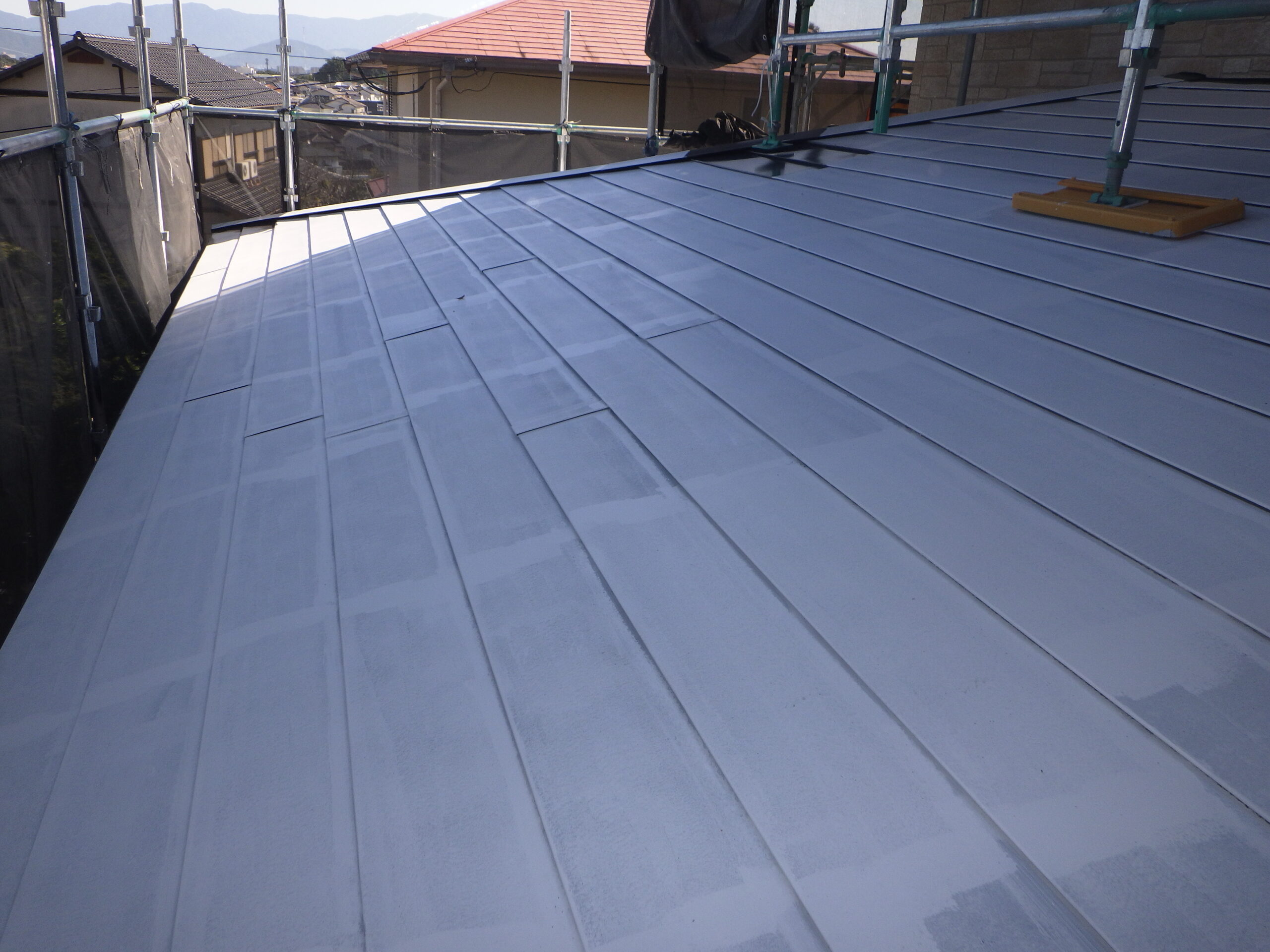 下塗りにサーモアイプライマーを塗装します。サーモアイと併せて下塗りに使用することにより、塗膜の日射反射率を向上させます。