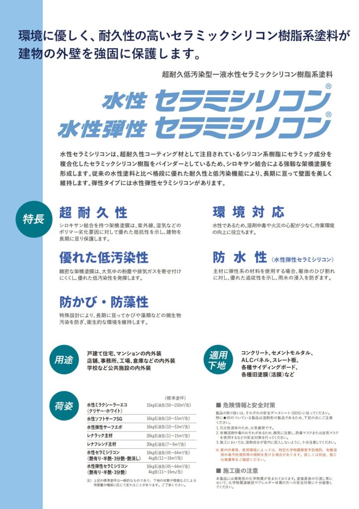 超耐久低汚染型一液水性セラミックシリコン樹脂系塗料